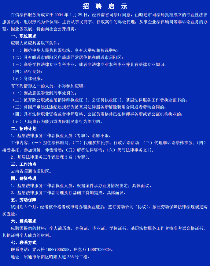 昭陽區(qū)百信法律服務(wù)所招聘啟示